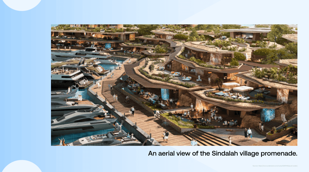 The integration of staff augmentation with advanced technologies is a defining feature of Sindalah’s development. NEOM’s use of AI and IoT (Internet of Things) solutions is bolstered by the expertise of augmented staff. For example, NEOM has partnered with tech specialists from Silicon Valley to design and implement AI based construction management systems. These systems utilize predictive algorithms to streamline supply chain logistics, reducing material wastage by 10% and improving overall project efficiency.